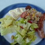 Nach dem Klosterbesuch haben wir einen schönen Blick in`s Tal, in dem unser heutiges Camp in Jaca liegt. Eine gemeinsam organisierte, gemütliche Campertafel rundet den Tag ab.