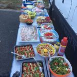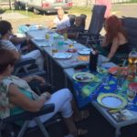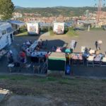 Am Morgen machen sich alle nach und nach auf den Weg in die Stadt. Jeder erkundet Bilbao auf seine Art und Weise. Die Altstadt bietet kleine Gassen und nette Geschäfte. Die Markthalle lädt zu einem Bummel ein: Metzgereien, Obst und Gemüse, Tapas und Vieles mehr wird hier geboten. Am Nachmittag trudeln alle wieder auf dem Stellplatz ein. Am Abend ist unsere Campertafel geplant, vorher machen wir noch die obligatorische Fahrerbesprechung. Dann wird gegrillt und lecker gegessen. Ein wunderbares Buffet ist zusammen gekommen und wir genießen einen schönen Abend.