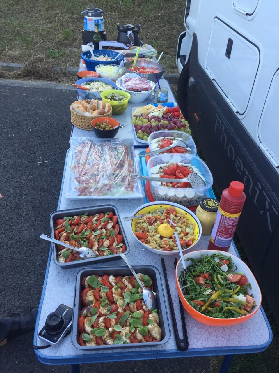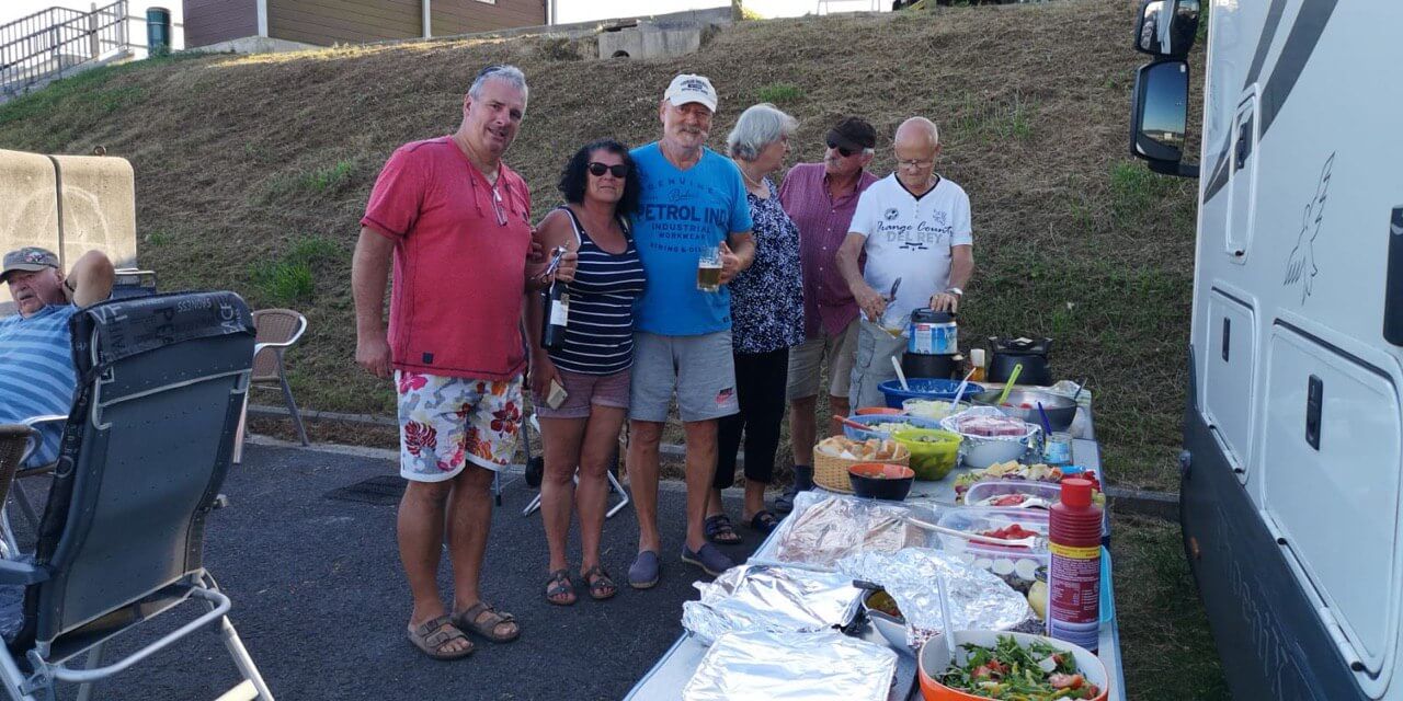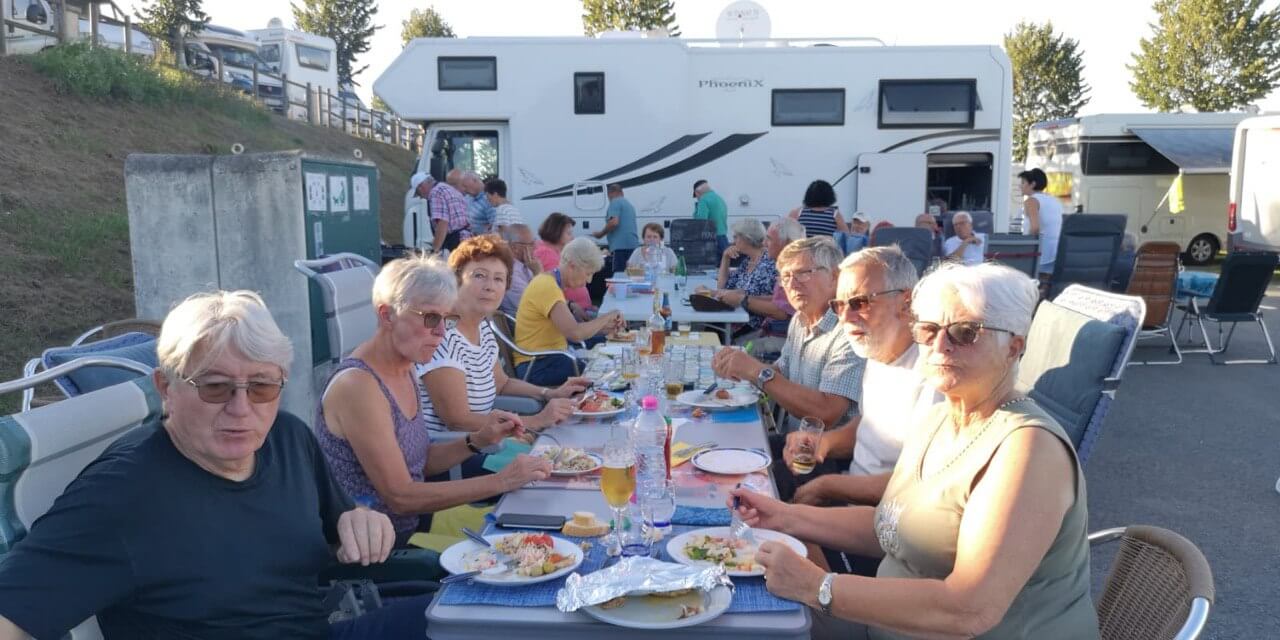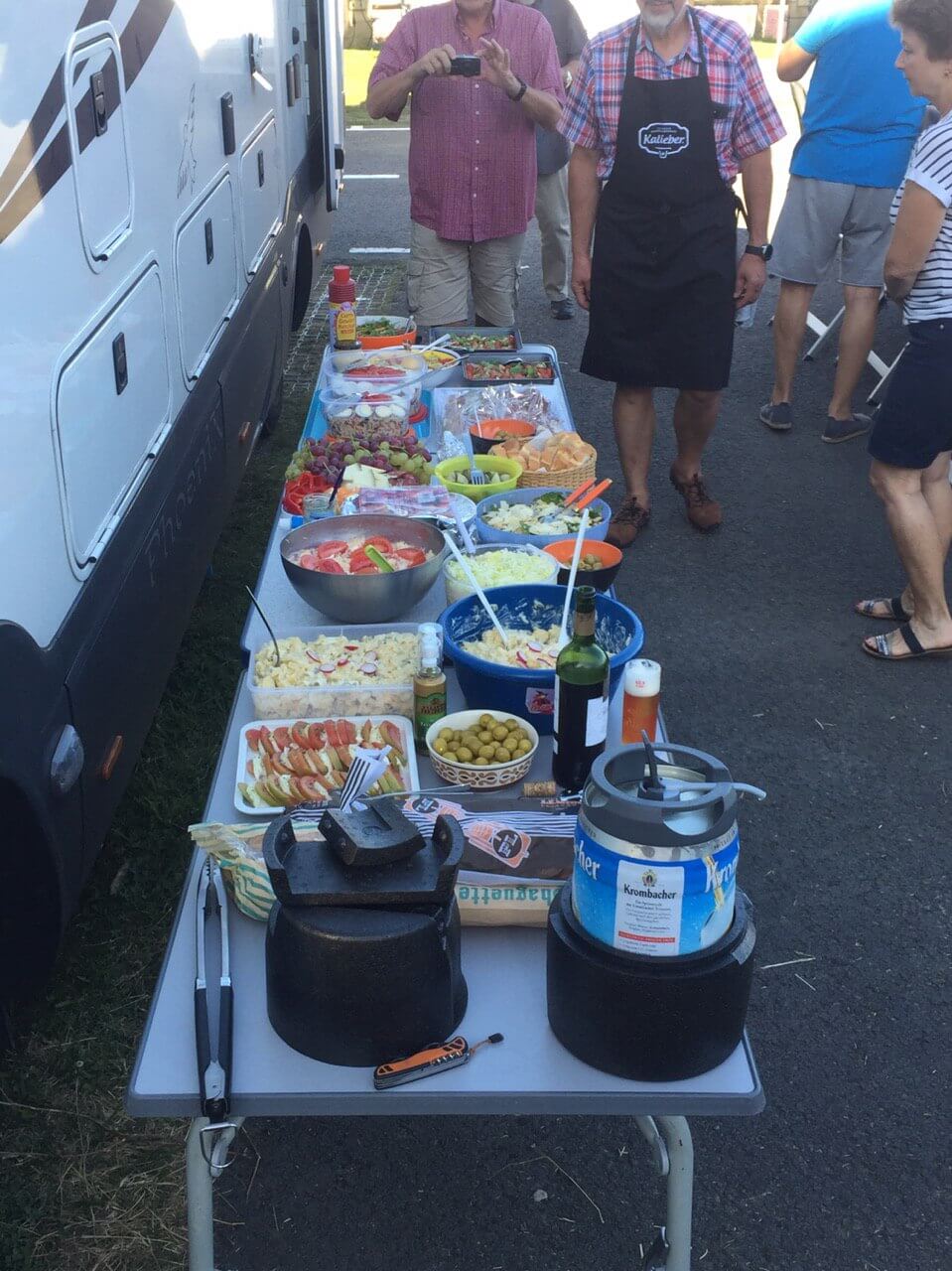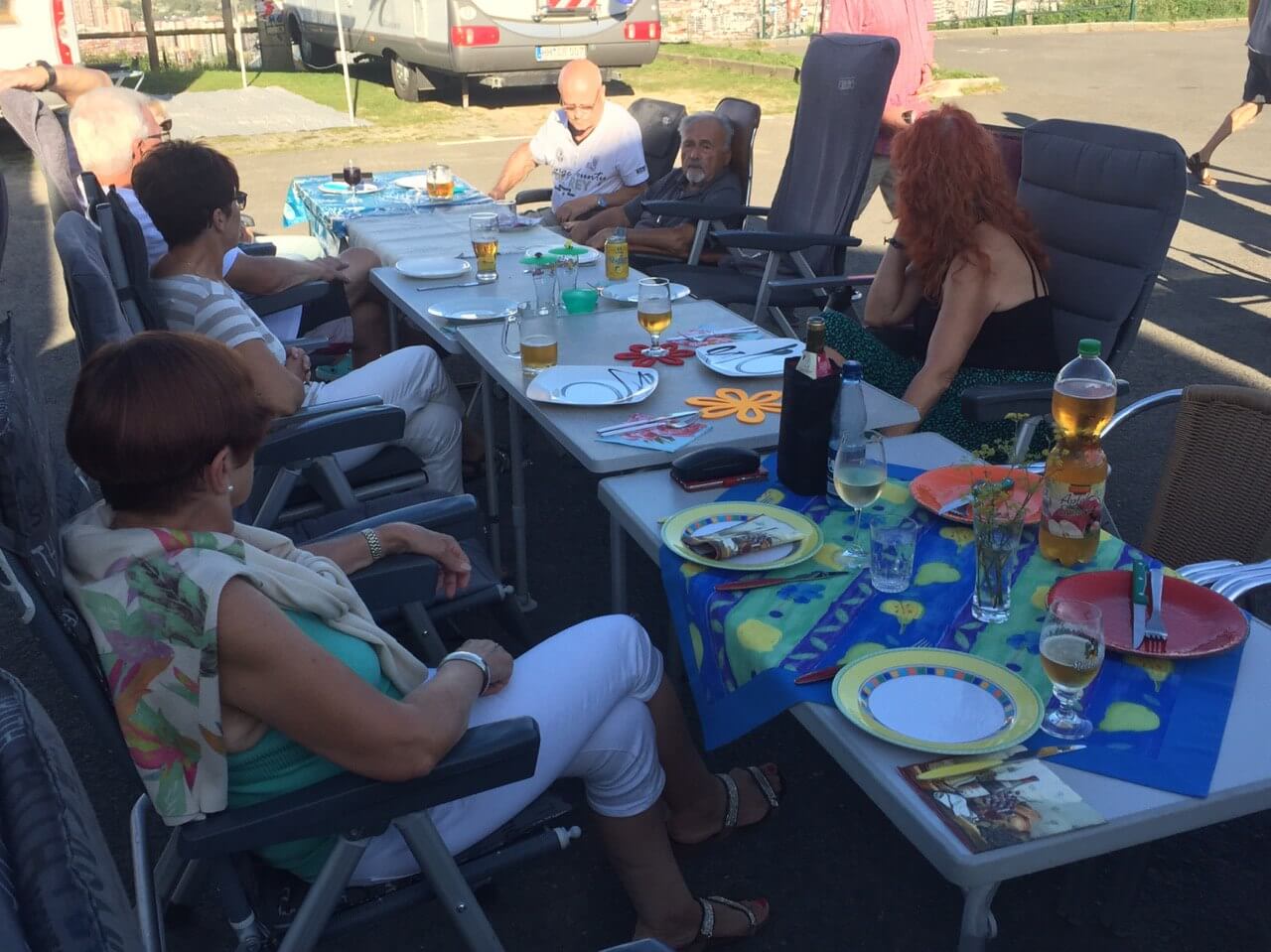 Am Morgen machen sich alle nach und nach auf den Weg in die Stadt. Jeder erkundet Bilbao auf seine Art und Weise. Die Altstadt bietet kleine Gassen und nette Geschäfte. Die Markthalle lädt zu einem Bummel ein: Metzgereien, Obst und Gemüse, Tapas und Vieles mehr wird hier geboten. Am Nachmittag trudeln alle wieder auf dem Stellplatz ein. Am Abend ist unsere Campertafel geplant, vorher machen wir noch die obligatorische Fahrerbesprechung. Dann wird gegrillt und lecker gegessen. Ein wunderbares Buffet ist zusammen gekommen und wir genießen einen schönen Abend.