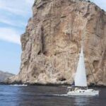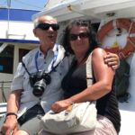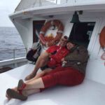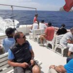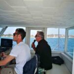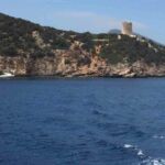 Am Mittag ist Zeit für eine Pause. Wir verteilen uns in kleinen Gruppen in die Restaurants und essen eine Kleinigkeit. Am Nachmittag treffen wir uns erneut und fahren mit dem Boot hinaus zum Capo Caccia. Eigentlich wollten wir mit dem Boot hinein fahren in die „Grotta Nettuno“, wegen der Wellen ist dies jedoch nicht möglich. Stattdessen fahren wir durch die Buchten, die zwischen Capo Caccia und Alghero liegen und genießen den Anblick der Strände, Felsformationen und der vielen Farben des Wassers vom Boot aus. Schön ist es! Wir lassen die Natur auf uns wirken.