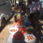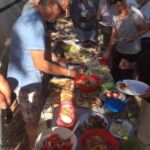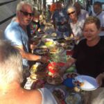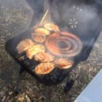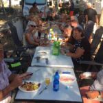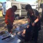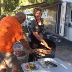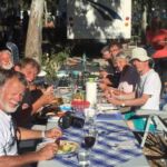 Am Abend kommt noch einmal Bewegung ins Camperleben. Wir bauen auf für unsere Campertafel. Unsere Sigrun grillt für die ganze Mannschaft! Sigrun, wir danken Dir!!!