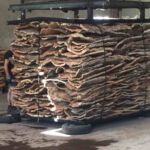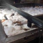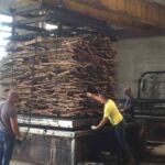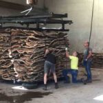 Der Bus steht morgens bereit und es geht pünktlich los. Heute wollen wir uns die Verarbeitung von Kork anschauen. Wir haben großes Glück! Gerade heute wird Kork aufgekocht. Dieser Vorgang findet in der Fabrik nur selten statt. Wir aber haben heute Gelegenheit dabei zu sein. Der Kork verbleibt etwa eine Stunde in siedendem, destilliertem Wasser. Danach wird er mit einem Kran herausgezogen und die einzelnen Stücke nach Qualität getrennt. Anschließend werden sie mit Gewichten beschwert, damit aus den runden Rinden ebene Platten entstehen.