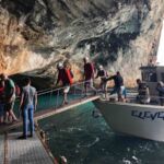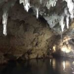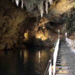 Gemütlich spazieren wir vom Campingplatz zum Hafen. Dort wartet wieder ein Boot auf uns. Wir fahren zunächst zur Mönchsrobben-Grotte. Sie hat ihren Namen von den Mönchsrobben erhalten, die einst in ihr lebten. Die Anfahrt ist spektakulär. Unser Boot fährt ein kleines Stück in die Höhle hinein. Dann steigen wir aus und begehen die Tropfsteinhöhle mit einem Guide. Die einzelnen Räume mit ihren Gebilden sind sehr beeindruckend. Nach der kleinen Höhlenwanderung holt unser Boot uns wieder ab.