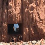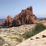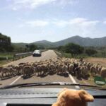 Bei strahlendem Sonnenschein starten wir zu unserer Fahrt an die Costa Rei. Zuerst schlängelt sich die Straße stetig bergan, bis wir nach einer knappen Stunde die Passhöhe Genna Silana 1.017 über NN erreichen. Auf dem Camperparkplatz treffen nach und nach unsere Wohnmobile ein. Wir genießen den tollen Ausblick in alle Richtungen. Da hier das Klima so angenehm ist, nutzen wir die Gelegenheit zu einem zweiten Frühstück im Freien. Nachdem wir den höchsten Punkt unserer Reise verlassen haben, schlängelt sich die Straße weiter an den Bergflanken entlang. Die karge Gegend dient als Weideland für Schafe und Ziegen. Die Möglichkeit, Käse und regionale Produkte direkt beim Bauern zu kaufen, wird gerne genutzt. Bald öffnet sich vor Baunei die Sicht auf die Ebene bei Tortoli. Leider ist es heute etwas diesig, so dass der Blick in die weite Ferne etwas in Nebel bleibt. Einige machen den Abstecher nach Arbatax um den beeindruckenden roten Felsen zu besichtigen. Der Strand von Santa Maria Navarrese lädt zu einem ersten Badestopp ein.