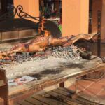 Nach einem durch und durch relaxten Tag treffen wir uns am Abend im Restaurant zum Barbecue. Unser Spanferkel dreht sich schon am Holzkohlengrill und wir bekommen schnell Appetit.