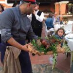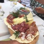 Wir genießen vorher die erste Vorspeise mit Schinken, Salami Artischocken und Pecorino-Käse, danach die zweite Vorspeise mit sardischen Spezialitäten, wie Culurgionis und Malloreddus alla campidanese – Sardische Gnocchi nach Campidano-Art. Danach Spanferkel mit Salat und später etwas Süßes, Espresso, Grappa und Mirto schließen das köstliche Menü ab.