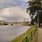 Der Gang in die Stadt durch den Park, immer am Fluss Ness entlang, macht Sinn. Über diese Brücke müssen wir, um in den schönen Park zu kommen!