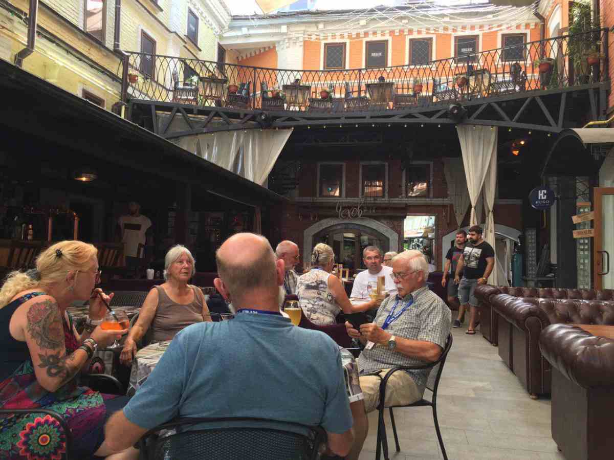Dem Einkauf in der Markthalle folgte das Schlendern durch die Fußgängerpassage. Die Hitze forderte dann ihren Tribut und die Gruppe traf sich „zufällig“ in einem Restaurant in einem Innenhof mit Restaurants und Eisläden. Nachdem unser Busfahrer auf dem Rückweg zum Camp noch kurz für einen Einkauf im Supermarkt einen Stop einlegte, war auch die morgige Campertafel abgesichert. Am Abend saßen alle in der gemütlichen Camperunde zusammen.