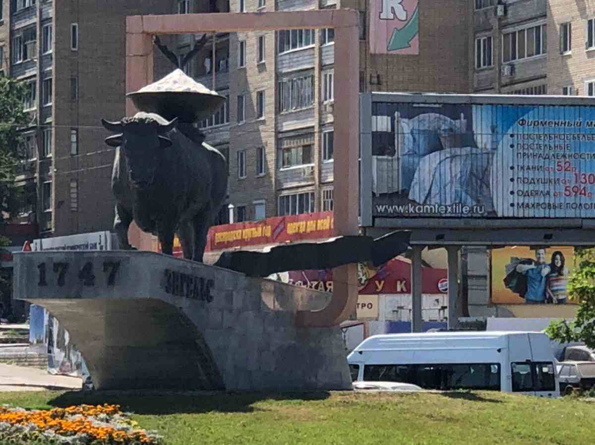 Auf der Erweiterung des Zarenreiches nach Osten wird Saratov im 16. Jahrhundert an der Wolga zum Schutz vor den Reitervölkern und zur Sicherung der Wasserwege gegründet. Bevor uns unser Bus jedoch nach Saratov bringt, durchfahren wir Engels – bis 1941 Verwaltungssitz der autonomen Republik der Wolgadeutschen. Das Wahrzeichen von Engels – der Stier mit dem Salzgefäß auf dem Rücken – symbolisiert die Bedeutung dieser Region als Kreuzung wichtiger Handelswege. Auch heute ist diese Region eingebunden in die Bemühungen der chinesischen Regierung, die Seidenstraße als Handelsweg wieder zu beleben.
