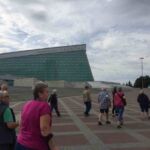 Auch in Ufa erspart uns die Stadtbesichtigung nicht, überrascht von der Großzügigkeit der Flächennutzung in dieser Millionenstadt zu sein. Da Ufa neben Russen einen Großteil tatarischer und baschkirischer Einwohner zählt, gibt es in der Stadt auch Moschehen, von denen wir eine besichtigen dürfen. Zunächst führt uns jedoch der Weg zum Denkmal des baschkirischen Nationalhelden Salawat Julajew. Ufa besitzt viele Grünflächen und Springbrunnen, von denen wir einige bei den Spaziergängen bewundern dürfen.