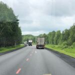 Heute erreichen wir die erste sibirische Millionenstadt. Die R 402 in Richtung Omsk ist in einem guten bis sehr guten Zustand. Auf neugebauten Abschnitten gleitet man auf ebener Straße dahin und bewundert die grüne Natur rechts und links. Auch Überreste aus den Zeiten der Sowjetunion blieben dem Straßenrand erhalten.