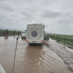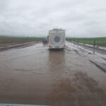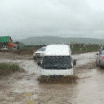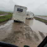 Nach dem Frühstück im Hotel wollen wir in die Hauptstadt der Mongolei, nach Ulaanbaatar Etwa 3,5 Std. sind für diese 230 Km geplant. Regen und mongolischer Straßenbau haben uns einen Strich durch die Rechnung gemacht. In mehreren Teilabschnitten wird die Straße grunderneuert und der Verkehr über parallele Pisten aus Erde und Lehm geführt. Der Regen und der starke Verkehr auf dieser einzigen Straße zwischen Sibirien und der Mongolei haben aus diesen Pisten 70 Km Wasserwüste werden lassen. Wir brauchten 11 Std., um mit teilweiser Schrittgeschwindigkeit metertiefe Wasserlöcher zu durchfahren. Mit viel Geschick und Erfahrung sind alle Fahrer am Ende gut am Hotel in Ulaanbaatar angekommen. Nach dem gemeinsamen Abendessen haben wir dieses unerwartete Abenteuer ausgiebig in der Hotelbar besprochen.