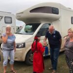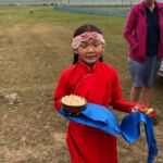 Im Camp werden wir von den Bewohnern und einer kleinen Gastgeberin mit getrockneten Quarkhäppchen begrüßt.