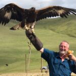 Als erfahrene Mongoleireisende fand jeder den Weg von unserem Camp durch die Steppe zur Straße und weiter nach Ulaanbaatar. Unterwegs sahen wir ein Übrigbleibsel aus der DDR. Ein Wartburg fand als ehemaliges Polizeiauto seine endgültige Ruhe am Straßenrand zur Warnung für Raser. Von dort sind wir gemeinsam zu unserem Camp im Terej Nationalpark gefahren. Bei einem kurzer Stopp vor dem Nationalpark konnte man mal einen Adler auf den Arm nehmen oder eine Ritt zwischen den Höckern eines Kamels wagen.