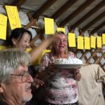 Nach dem gemeinsamen Abendessen feierten alle den Geburtstag von Marta. Vom Camp bekam sie eine große Torte überreicht.