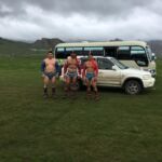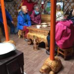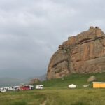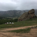 Heute ist endlich wieder etwas Zeit, sich um alles zu kümmern, was in den letzten Tagen zu kurz gekommen ist. Leider regnet es am Vormittag so dass der Besuch einen Nomadenfamilie auf den Nachmittag verschoben wird. Es bleibt mehr Zeit, im Womo alles für die bevorstehende Rückreise über die Ruckelpiste zu verankern. Den letzten Tag, bevor wir uns auf den Rückweg zunächst nach Sibirien machen, wollen alle jedoch nochmals den wunderschönen Nationalpark genießen. Unserer Guide fährt mit dem Begleitfahrzeug einige Interessenten zu einem Stein, der die Form einer Schildkröte hat. Nachdem es aufgehört hat zu regnen, wandern einige zu einer Jurte, in der eine Nomadenfamilie lebt. Hier kann man sich authentisch über das Leben in einer Jurte informieren. Die Nomadenfamilie begrüßt die Besucher mit einem kleinen Imbiss. Wir kommen natürlich auch nicht mit leeren Händen. Für die Kinder der Familie haben wir einen Berg Süßigkeiten mitgenommen.
