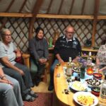 Vor dem gemeinsamen Abendessen finden sich alle in einer Jurte, in der man übernachten konnte, zusammen um den Beginn unserer Heimreise zu besprechen. Es gibt aber noch einen zweiten Grund. Wir haben schon wieder einen Geburtstag zu feiern. Diesmal lädt Uwe ein, bei Wein und Bier und natürlich auch bei etwas Wodka das neue Lebensjahr zu feiern.