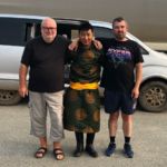 Bevor wir die Mongolei verlassen, verabschieden wir uns ganz herzlich von unserem mongolischen Guide und dem Fahrer des Begleitfahrzeugs, der uns sehr viel auf den schlechten Wegstrecken aber auch bei kleineren Reparaturen geholfen hat. Er hat zur Verabschiedung sogar seine mongolische Sonntagstracht angelegt. Für die Ausreise aus der Mongolei haben wir nur eine Stunde benötigt. Die Beamten waren wie bei der Einreise nett und freundlich.