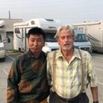 Bevor wir die Mongolei verlassen, verabschieden wir uns ganz herzlich von unserem mongolischen Guide und dem Fahrer des Begleitfahrzeugs, der uns sehr viel auf den schlechten Wegstrecken aber auch bei kleineren Reparaturen geholfen hat. Er hat zur Verabschiedung sogar seine mongolische Sonntagstracht angelegt. Für die Ausreise aus der Mongolei haben wir nur eine Stunde benötigt. Die Beamten waren wie bei der Einreise nett und freundlich.