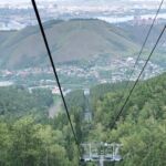 Auf dem Weg zum zweitgrößten Wasserkraftwerk Russlands machten wir Stopps am Jenissei, im Dorf des Schriftstellers Astafjew – eines Weggefährten Solschenizyns – und in Diwnogorsk – der Heimatstadt der Erbauer des Staudamms. Nach dem Staunen vor den riesigen Dimensionen der Staumauer ging es weiter zum Skigebiet Bobeovy Log. Mit den Sessellift fuhren wir auf den über 500 m hohen Berg am Rande von Krasnojarsk. In Sibirien reicht die Höhe, um schneesicher zu sein.