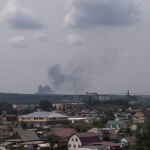 In der Ferne sieht man die Rauchschwaden des explodierten Armeedepots in Kamenka, ca 9 km von Atschinsk entfernt. In der deutschen Presse konnten wir etwas über die Explosion von eingelagerten Minen und Raketen lesen.