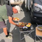 Am Abend findet unsere nächste Campertafel statt. Mit viel Fleiß wurde von einigen alles vorbereitet und dann ließen wir uns die Bratwürste und Steaks schmecken. Das gute Wetter machte es möglich, das wir bis in den späten Abend gemütlich zusammen saßen.
