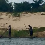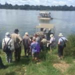 Am Nachmittag treffen wir uns am Bootsanleger neben der Lodge und dann geht’s los. Mit zwei kleinen Booten, die extra für Flachwasser geeignet sind fahren wir erst auf dem Hauptfluss, später auf einem Seitenarm. Wir entdecken viele seltene Vögel, einige Flusspferde und auch das eine oder andere Krokodil. Da diese leider sehr scheu sind verschwinden sie, sobald wir näher kommen. Nur eines liegt am Ufer und lässt sich geduldig fotografieren.