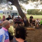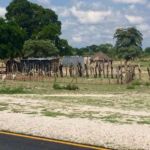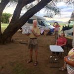 Die längste Etappe der Reise liegt heute vor uns – fast 500 Kilometer. Dafür ist die Strecke sehr gut zu fahren. Gute Straße, vorbei an Dörfern und ehe wir uns versehen erreichen wir Grootfontein. Viele decken sich im Supermarkt noch einmal mit Lebensmitteln ein und dann fahren wir hinaus zu unserem Camp. Eine wunderbare große Wiese erwartet uns mit großen Bäumen, die Schatten spenden. Ein herrlicher Pool bietet eine Erfrischung.