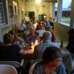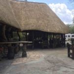 Nach einer kurzen Fahrerbesprechung gehen wir zum Abendessen. Heute gibt es etwas Besonderes: Springbock und Kudu auf dem Grill zubereitet. Wir sind begeistert! Bei sehr guter Stimmung genießen wir unser Abendessen, während vor der Terrasse ein heftiges Gewitter tobt. Später müssen wir leider feststellen, es hat uns den Strom genommen und wir verbringen die Nacht ohne Strom.