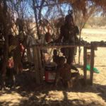 … und schon wieder klingelt der Wecker früh, aber nicht weil der Reiseleiter irgendwelche Aktivitäten angekündigt hat, sondern ganz freiwillig! Alle sind ein wenig unsicher wie es wohl heute zu fahren sein wird – liegt doch heute unsere längste Etappe auf Gravel Road, also Schotterpiste vor uns. Gerade weil wir nun schon oft über Schotter gefahren sind, wissen wir, wie unterschiedlich es sein kann. Auf richtig schlechter Straße sind schon wenige Kilometer eine Tortur. Auf guter Piste dagegen kann man auch schon mal 100 Stundenkilometer fahren. Zu unserer Erleichterung ist es eine sehr gute Strecke und alle sind froh und erleichtert die 200 Kilometer ohne kaputte Reifen überstanden zu haben. Unterwegs gibts nicht viel, ein paar Himbas bieten ihre Waren an, Mineralien gibt es auch.