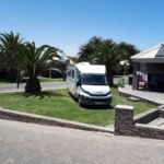 Dann erreichen wir unser herrliches Camp in Swakopmund. Es herrscht sofort richtiges Urlaubsfeeling. Jeder hat ein eigenes Badehaus. Strom macht keine Probleme, Palmen und schöne Parzellen, alle beieinander – besser geht nicht! Einige von uns gehen in die Stadt oder probieren gleich im Meer zu baden. Wir schätzen 20 Grad Wassertemperatur. Eine herrliche Abkühlung. Nach unserer Fahrerbesprechung lassen wir den Tag ausklingen – jeder nach eigenem Belieben, meist in kleinen Gruppen.