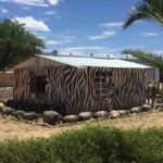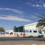 Außerdem gibt’s hier einige Händler, die ihre Schnitzereien anbieten – sogar Giraffen in Lebensgröße. Wir erreichen Windhoek und nach einer kurzen Anfahrt durch den Ort haben wir das Camp erreicht, um uns sofort auf die fast alltägliche Organisation von Strom zu konzentrieren. Aber nach einer kurzen Zeit und etwas handwerklichem Geschick sind alle versorgt. Hoffentlich hält die Sicherung über die Nacht.