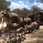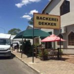 Gut erholt nach zwei sehr entspannenden Tagen, ist es jetzt auch wieder Zeit, dass die Karawane weiter zieht. Also machen wir uns am Morgen auf die rund 350 Kilometer überwiegend schnurgerade gut geteerte Straße. Wir passieren einige kleinere Ortschaften, wie Usakos. Dort entdecken wir eine alte Dampflokomotive am Bahnhof. Weiter geht’s nach Okahandja mit einer deutschen Bäckerei, die allerdings bei unserem Eintreffen von unseren Vorgängern der Gruppe schon ziemlich geplündert wurde.