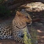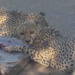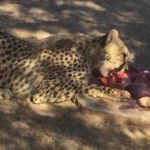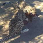 Am späten Nachmittag machen wir noch einen herrlichen Ausflug. Mit drei Kleinbussen fahren wir zu einem Gehege mit Leoparden. Diese werden alle zwei Tage gefüttert. Heute können wir dabei sein. Wir können im Gehege direkt neben den Tieren stehen und sie beim Fressen beobachten. Berühren sollten wir sie dabei nicht! Ein tolles Erlebnis!