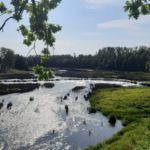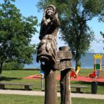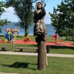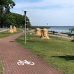 Nachdem wir alle ausgeruht von unserem Ruhetag gestern und unserem gemütlichen Grill Abend mit anschließendem Sonnenuntergang am Strand voller Tatendrang in der Früh gestartet sind, geht es erst einmal wieder zum Vorräte auffüllen. Wir machen uns wieder auf die Reise und durchfahren die kleine Stadt Kuldiga. Idyllisch liegt die Stadt hinter den Stromschnellen der Venta – mit 249 m der angeblich breiteste Wasserfall Europas- und es ist schön anzusehen, wie gleichmäßig das Wasser über die nur 2 m hohe Stufe fällt. Weiter geht es nach Liepāja „ Stadt des Windes“. Hier gibt es einen besonders schönen Strand mit dem wahrscheinlich weißesten Pulversand des Landes, einen prächtigen Strandpark mit eleganten Sommervillen der Jahrhundertwende. Nach der Fähre erreichen wir den wundervollen Ort Juodkrante . In den letzten Jahren hat Juodkrante durch eine neu angelegte, 2 km lange Promenade sehr gewonnen, auf der man am Haff entlangspazieren kann. 1997-1999 entstand hier ein Park mit 31 Skulpturen litauischer und internationaler Künstler. Hier gefällt es uns besonders gut und wir haben auch schnell ein super nettes Plätzchen gefunden und werden hier unsere Pause einlegen um dann gestärkt unseren CP anzufahren.