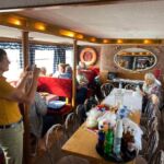 Bereits zu früher Stunde holten uns unsere Gästeführerin Marjellchen und Busfahrer Czeslaw am Campingplatz ab und los ging es zum ersten Tagesausflug durch Teile von Masuren. Dieser führte uns bei strahlendem Sonnenschein und angenehmen Temperaturen vorbei an wunderschöner Seen- und Waldlandschaft in die Stadt Lötzen/Gizycko, von der aus wir dann zu einem längeren Schiffsausflug zur Kormoran–Insel starteten. Wir konnten die Fahrt durch die schöne Natur an Deck genießen und uns zur Mittagszeit mit einer leckeren Mahlzeit für die zweite Hälfte des Tages stärken.