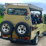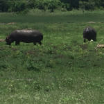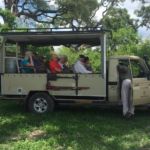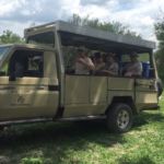 Dann geht’s weiter. Wir sehen Elefanten, ganz viele Giraffen, Flusspferde, eine große Herde Büffel, Adler, aber vor allem ist auch die Fahrt ein Erlebnis.