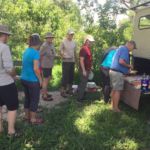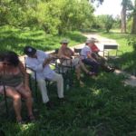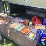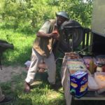 Sie zaubern ein Büffet aus den Jeeps hervor, mit allem, was wir brauchen, um gescheit satt zu werden.