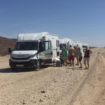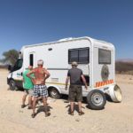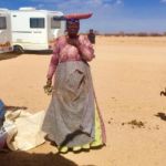 Nach dem genussvollen Sundowner gestern, steht heute wieder eine lange Schotterpiste auf dem Programm. Die ersten 8 km sind noch Teer, dann biegen wir ab und sind sehr gespannt, in welchem Zustand die Piste wohl sein mag. Zu unserer Freude ist sie in recht gutem Zustand. Jeder fährt seine Geschwindigkeit, so, wie er am besten klar kommt. Unterwegs sehen wir noch ein paar Himba Stände und halten an. Wir kaufen noch ein paar Andenken und Geschenke für die Lieben zu Hause.