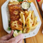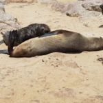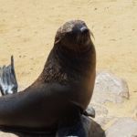 Es geht zurück südwärts. Wir passieren wieder die Piste, die uns zum Meer gebracht hat. Nun fahren wir immer entlang der Küste. Ein kleiner Ort, Henties Bay, lädt zu einer mittäglichen Fischmahlzeit ein! Lecker! Kabeljau, Calimari und ähnliche Gerichte locken.