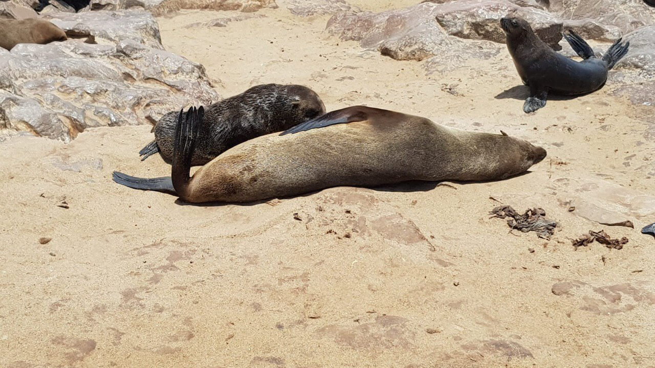Weiter fahren wir nordwärts zu den Seehundbänken. Etwa 25000 Seehunde haben sich hier nieder gelassen. Der Geruch ist bestialisch.