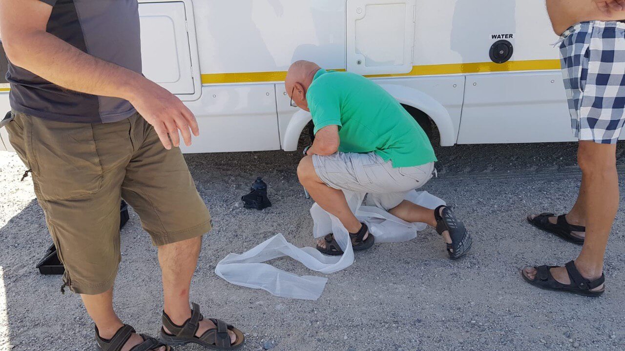 Nicht nur ein Reifen, sondern an einem 2. Wohnmobil wird auch noch ein Reifenwechsel nötig!