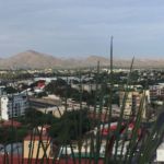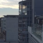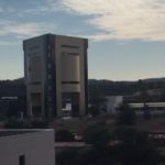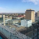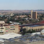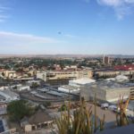 Zuerst jedoch fahren wir dann ins Hilton Hotel. Dort mit dem Aufzug ganz nach oben auf die Dachterrasse. Hier verschaffen wir uns einen Überblick über Windhoek und seine Lage zwischen den Bergen.