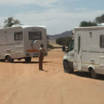 Etwas Konfusion bei der Ankunft, zwei Wohnmobile fahren sich gleich im Wüstensand fest…