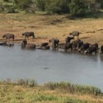 Bis zu unserer Lodge sind es noch 50 km. Und bereits der erste Tag liefert tolle Bilder. Wir beobachten ein Krokodil, während es eine Schlange am äuget eines Wasserlochs verschlingt. Die Bilder sprechen für sich.