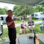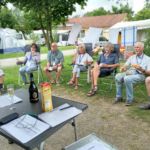 Es regnet, leider! Aber wir sind guter Dinge, denn alle Teilnehmer sind wohlbehalten und pünktlich in der schönen Lux-Oase angekommen. Unter der Markise vor unserem Wohnmobil gibt’s es einen kleinen Sektumtrunk zur Begrüßung der KUGA-GÄSTE, die sich dann die nötigen Einweisungen zu Gemüte führen und die Navis entgegennehmen.