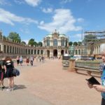 Durchs große Tor geht es hinein in den Zwinger. Der Herrscher August der Starke ließ im Jahre 1710 eine Orangerie erbauen, aus der heutige Zwinger bis 1732 erwuchs. Seinen Namen bekam er daher, dass aus Platzgründen diese Anlage „hineingezwungen“ werden musste. Der Zwinger war nie Residenz und diente nur repräsentativen Zwecken August des Starken. Es wurde ein Meisterwerk barocker Bauweise. Leider gehörte bei unserem Besuch der sehenswerte Glockenspielpavillon, der ein Glockenspiel aus Meissener Porzelan in sich trägt, zu den eingerüsteten Gebäuden.