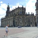 Und unentwegt macht uns Herr Winkler auf die sehenswerten Dinge aufmerksam und erzählt uns deren Geschichte und Wissenswertes. Wir gehen zurück zum Theaterplatz vor der Semperoper und schauen uns die einstige katholische Hofkirche an, in der in einer Kapsel das Herz August des Starken ruht. Sein Körper ist im Krakauer Dom beigesetzt, da er auch als König von Polen gekrönt war.
