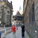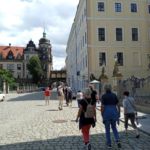 Weiter geht’s vorbei am „Grünen Gewölbe“, dem Museeum, in dem Kunstgegenstände von enormem Wert beherbergt sind. Man erinnere sich an den skandalösen Juwelenraub vor einigen Jahren! Von hier haben wir noch einen schönen Blick zur Semperoper! Und nun stehen wir vor der Schloßmauer, auf der aus Tausenden von Porzellanfliesen der berühmte „Fürstenzug“ mit den Herrschern des Hauses Wettin abgebildet ist. Hoch zu Ross erkennt man hier auch August den Starken.
