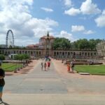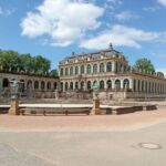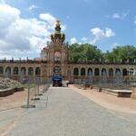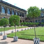 Durchs große Tor geht es hinein in den Zwinger. Der Herrscher August der Starke ließ im Jahre 1710 eine Orangerie erbauen, aus der heutige Zwinger bis 1732 erwuchs. Seinen Namen bekam er daher, dass aus Platzgründen diese Anlage „hineingezwungen“ werden musste. Der Zwinger war nie Residenz und diente nur repräsentativen Zwecken August des Starken. Es wurde ein Meisterwerk barocker Bauweise. Leider gehörte bei unserem Besuch der sehenswerte Glockenspielpavillon, der ein Glockenspiel aus Meissener Porzelan in sich trägt, zu den eingerüsteten Gebäuden.